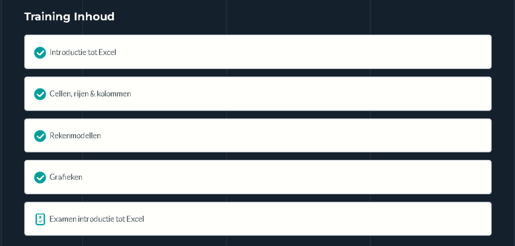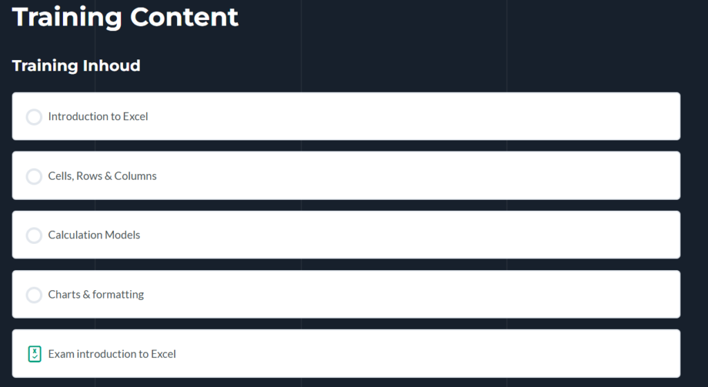 No problem! We are happy to help you take your first steps in Excel. That’s why we offer an Excel basic training course. This training can be followed either in a classroom setting or through our online learning environment.